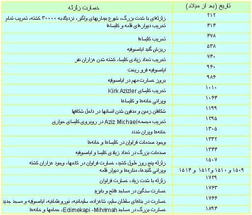 جدول شماره 1 فهرست تقریبی خسارات زلزله های